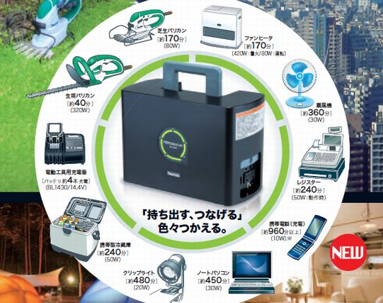 コレ1台あれば屋外で急に電気が必要になった場合も機械を充電さえしておけばノートPCで最大7時間以上の使用が可能となります